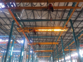 單梁、雙梁橋式起重機(jī)是橫架于車間、倉庫和料場上空進(jìn)行物料吊運(yùn)的起重設(shè)備。由于它的兩端坐落在高大的水泥柱或者金屬支架上,形狀似橋。橋式起重機(jī)的橋架沿鋪設(shè)在兩側(cè)高架上的軌道縱向運(yùn)行,可以充分利用橋架下面的空間吊運(yùn)物料,不受地面設(shè)備的阻礙。它是使用范圍最廣、數(shù)量最多的一種起重機(jī)械。LD型單梁橋式起重機(jī)技術(shù)先